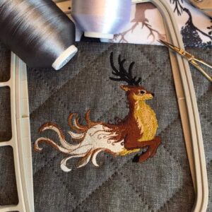 Hirsch im Doodle-Stil: Niedliche Stickdatei mit Blumenkrone für DIY-Projekte