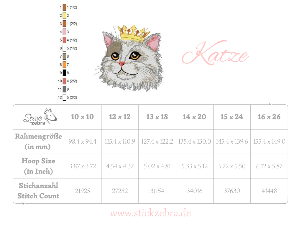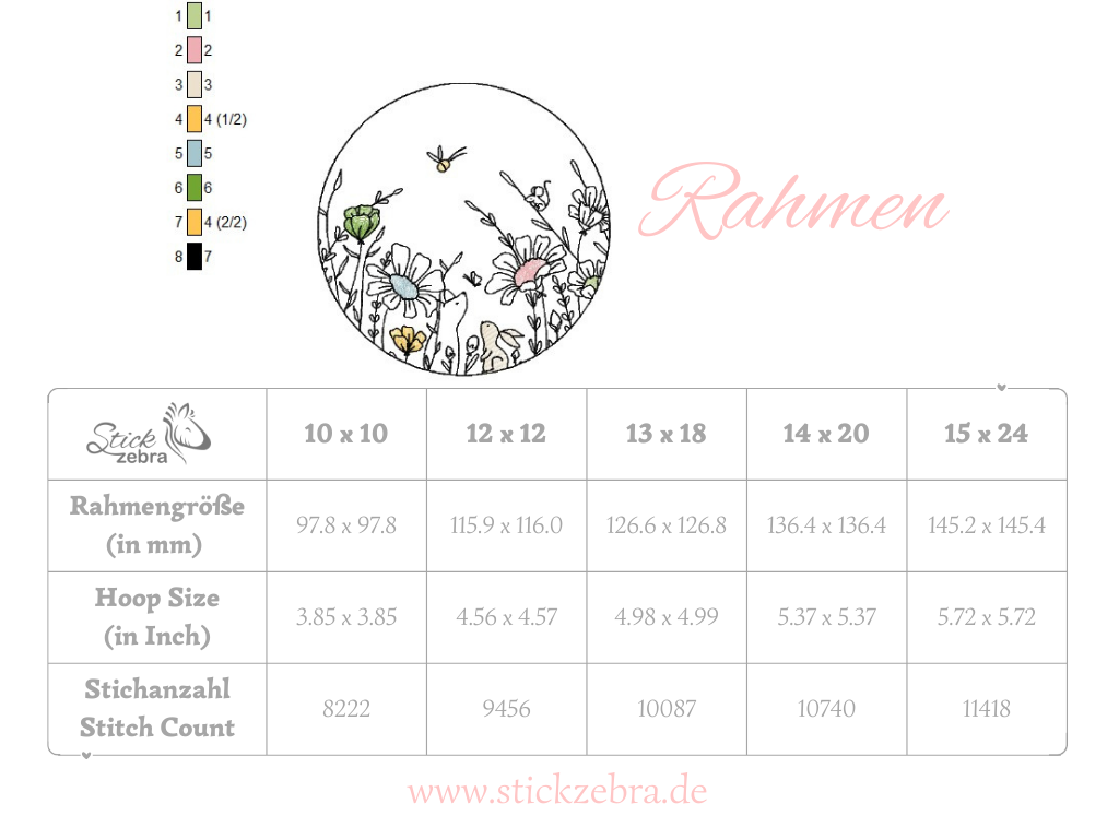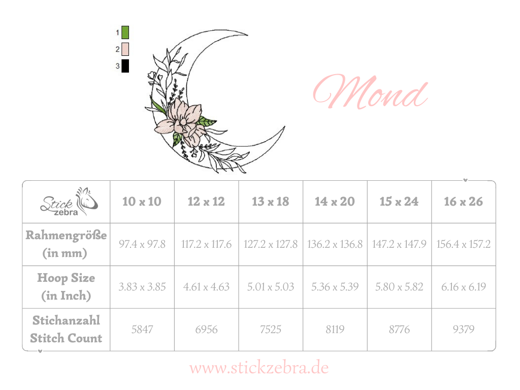 Keine digitale Weitergabe, kein Wiederverkauf und kein Teilen der Stickdatei, alle Stickzebra-Designs sind urheberrechtlich geschützt.