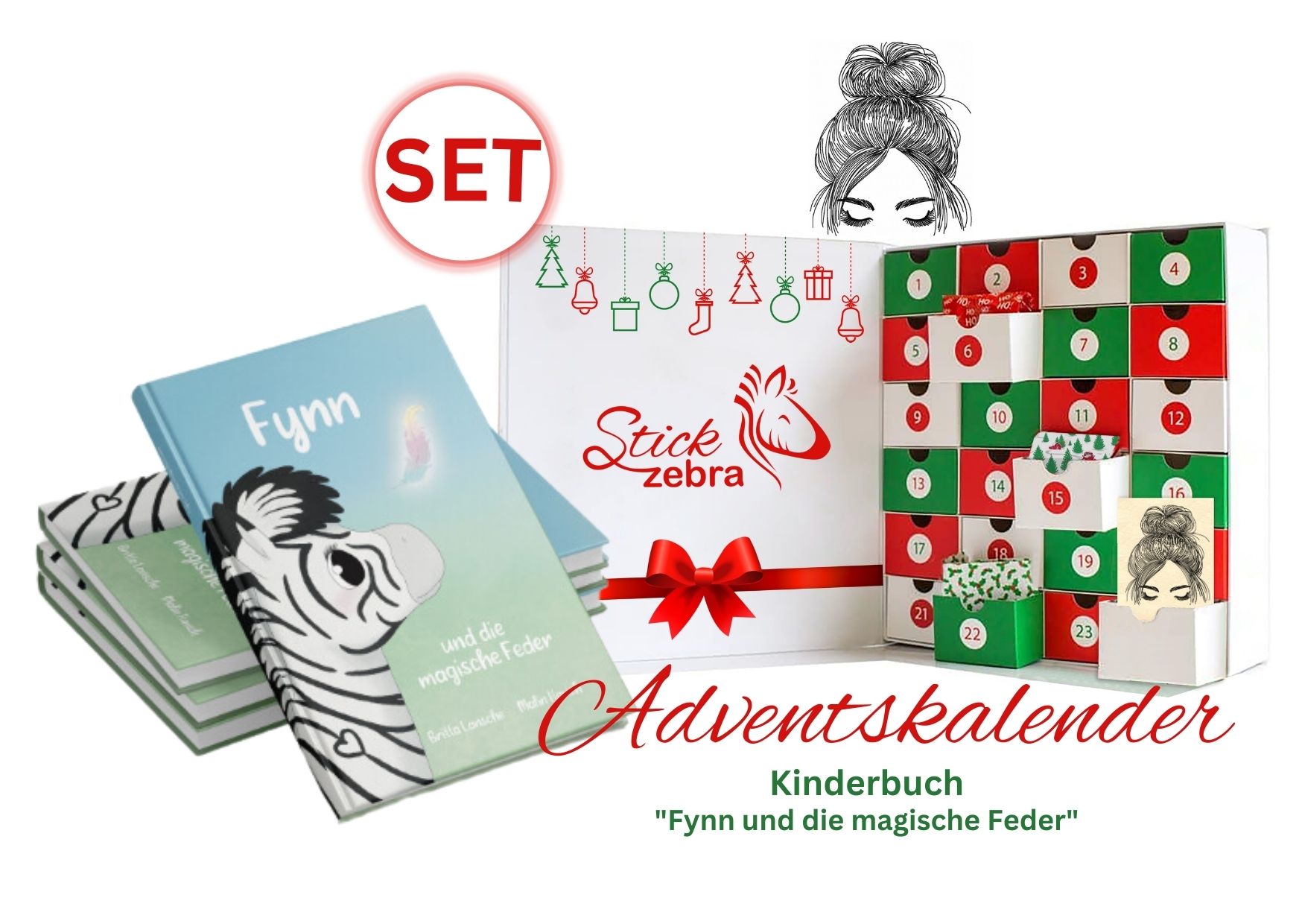 Der einzigartige Stickzebra Adventskalender – inklusive des tollen Kinderbuchs „Fynn und die magische Feder“ – ist wieder erhältlich!