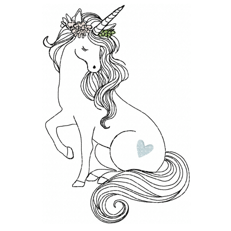 Dieses niedliche Einhorn setzt sich auf deinem Stoff in Szene und verleiht jeder Stickarbeit eine kindliche Note.