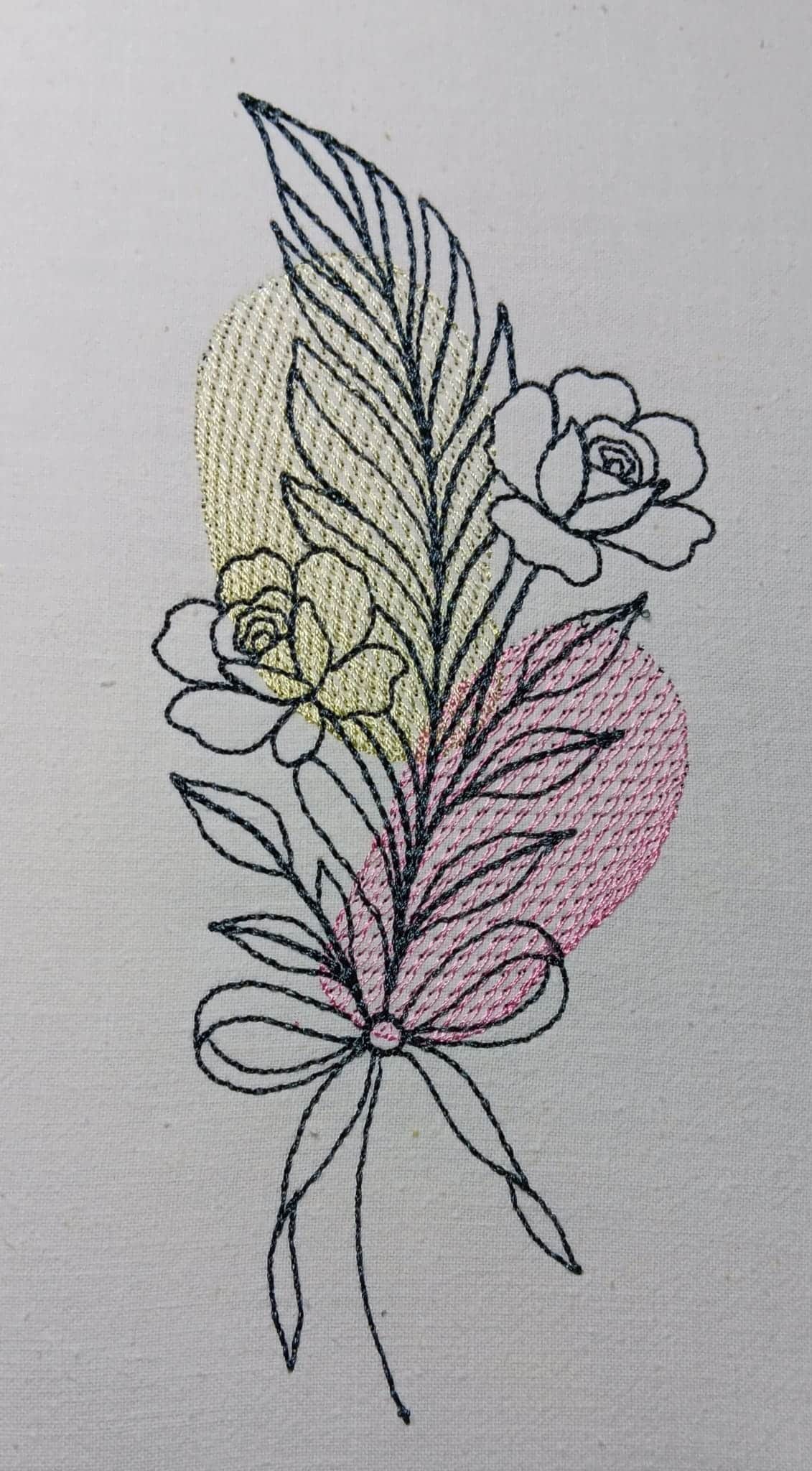 Feder Stickdatei, elegante Doodle Feder mit Rosen für deine Stickmaschine