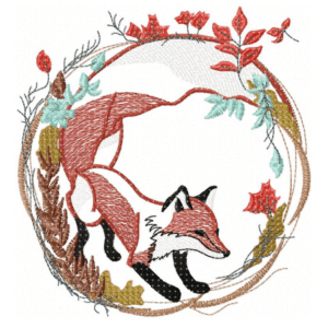 Fuchs mit herbstlichem Kranz Stickdatei: Charmantes Design für warme Stickprojekte und Herbstdekorationen