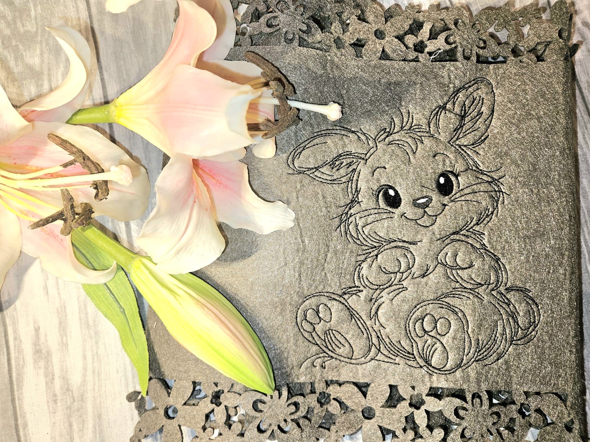 Du kannst zum Beispiel ein dickes Schneidevlies oder ein vergleichbares verwenden, um eine schöne und gleichmäßige Stickerei zu erhalten.