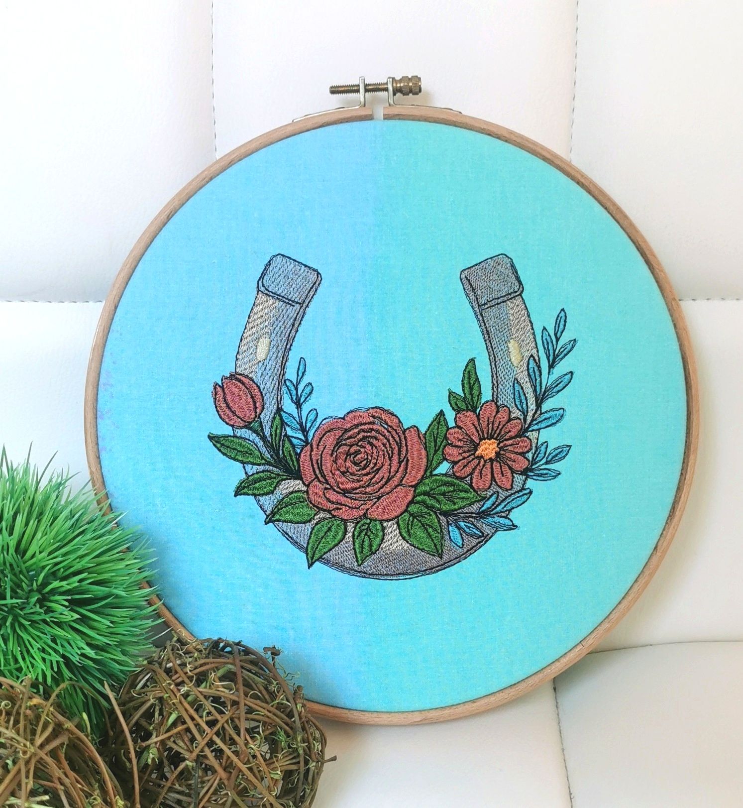 Hufeisen Stickdatei, blumiges Hufeisen für deine Stickmaschine