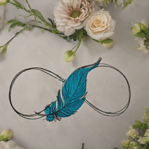Unendlichkeitszeichen im Doodle-Stil mit Feder Motiv, Stickdatei für Kreative Stickprojekte