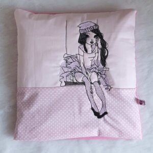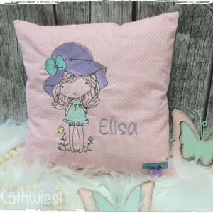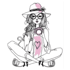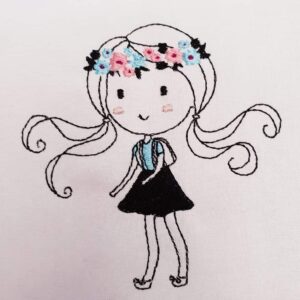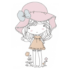 Diese niedlichen Mädchen setzt sich auf deinem Stoff in Szene und verleiht jeder Stickarbeit eine „Best Friend“ Note.