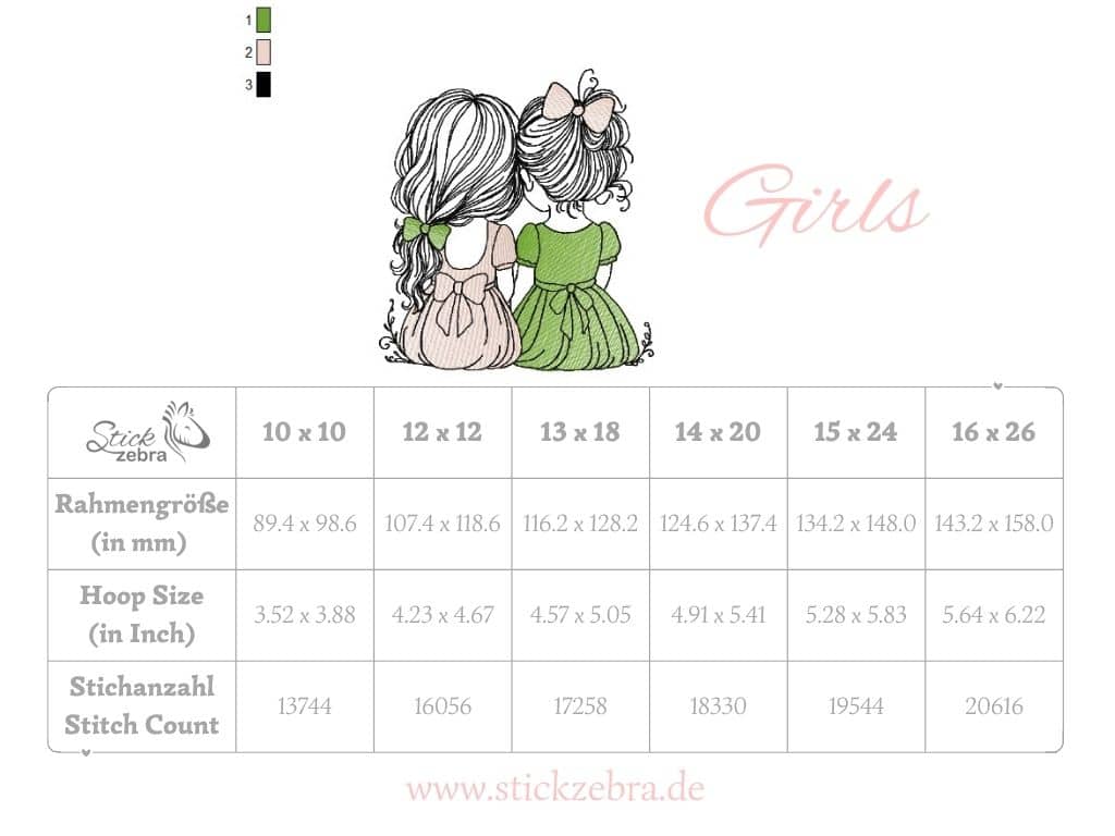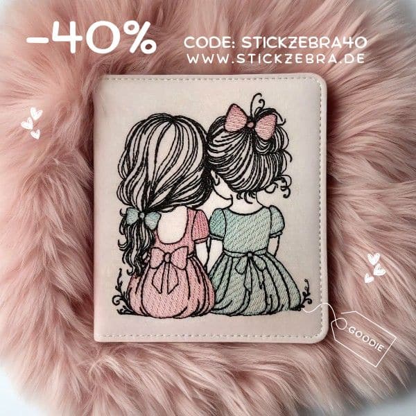 Mädchen Stickdatei, zuckersüßes Freundschafts Motiv für deine Stickmaschine