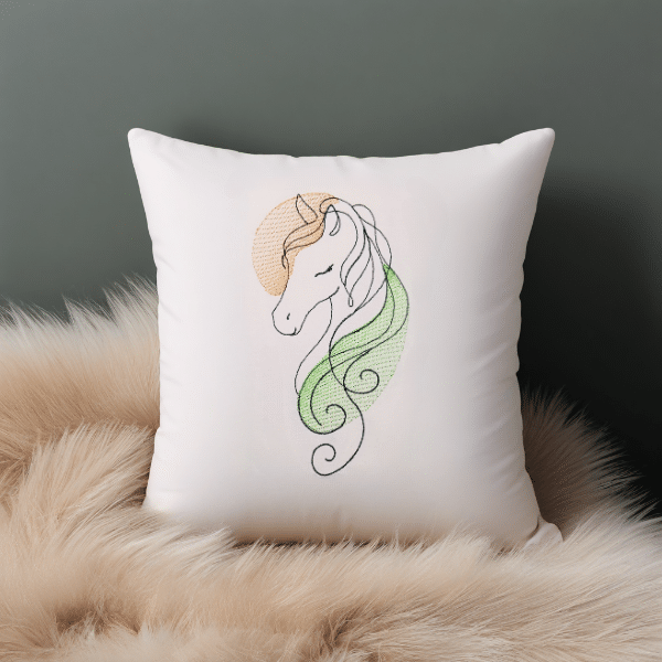 Das elegante Pferd mit seinen feinen Linien setzt sich auf deinem Stoff in Szene und verleiht jeder Stickarbeit eine künstlerische Note.