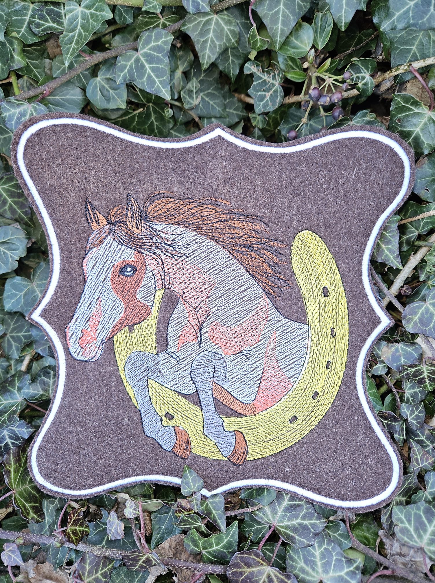 Diese springende Pferd setzt sich auf deinem Stoff in Szene und verleiht jeder Stickarbeit eine sportliche Note.
