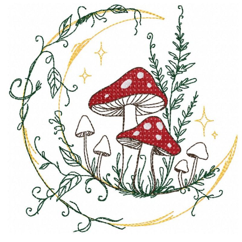 Pilz Stickdatei, magische Pilze für deine Stickmaschine