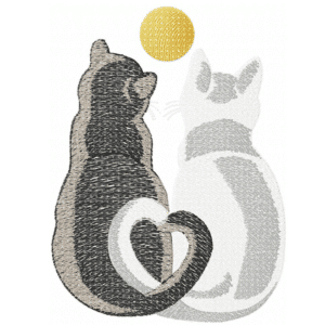 Katzenliebespärchen vor dem Mond Stickdatei: Romantisches Katzen Design für liebevolle Stickprojekte und Dekorationen