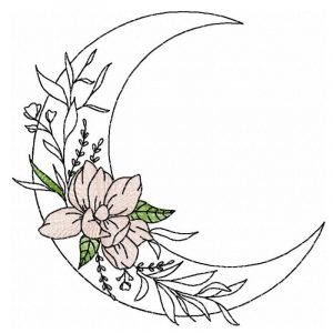 Blumenmond Stickdatei, blumiger Mond mit Magnolien für deine Stickmaschine